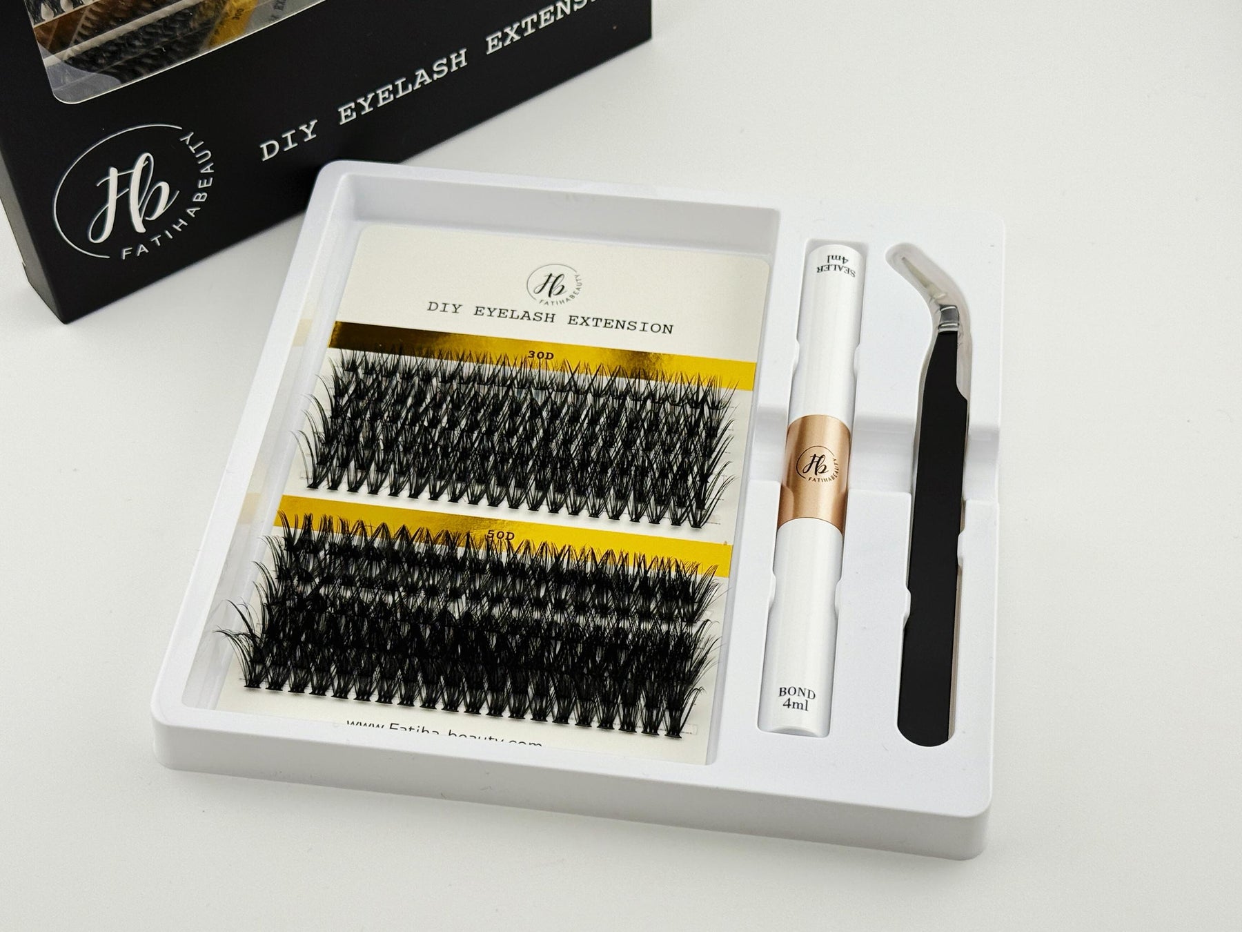 Sublimez votre regard facilement avec le Kit DIY Cils Cluster Fatiha Beauty.